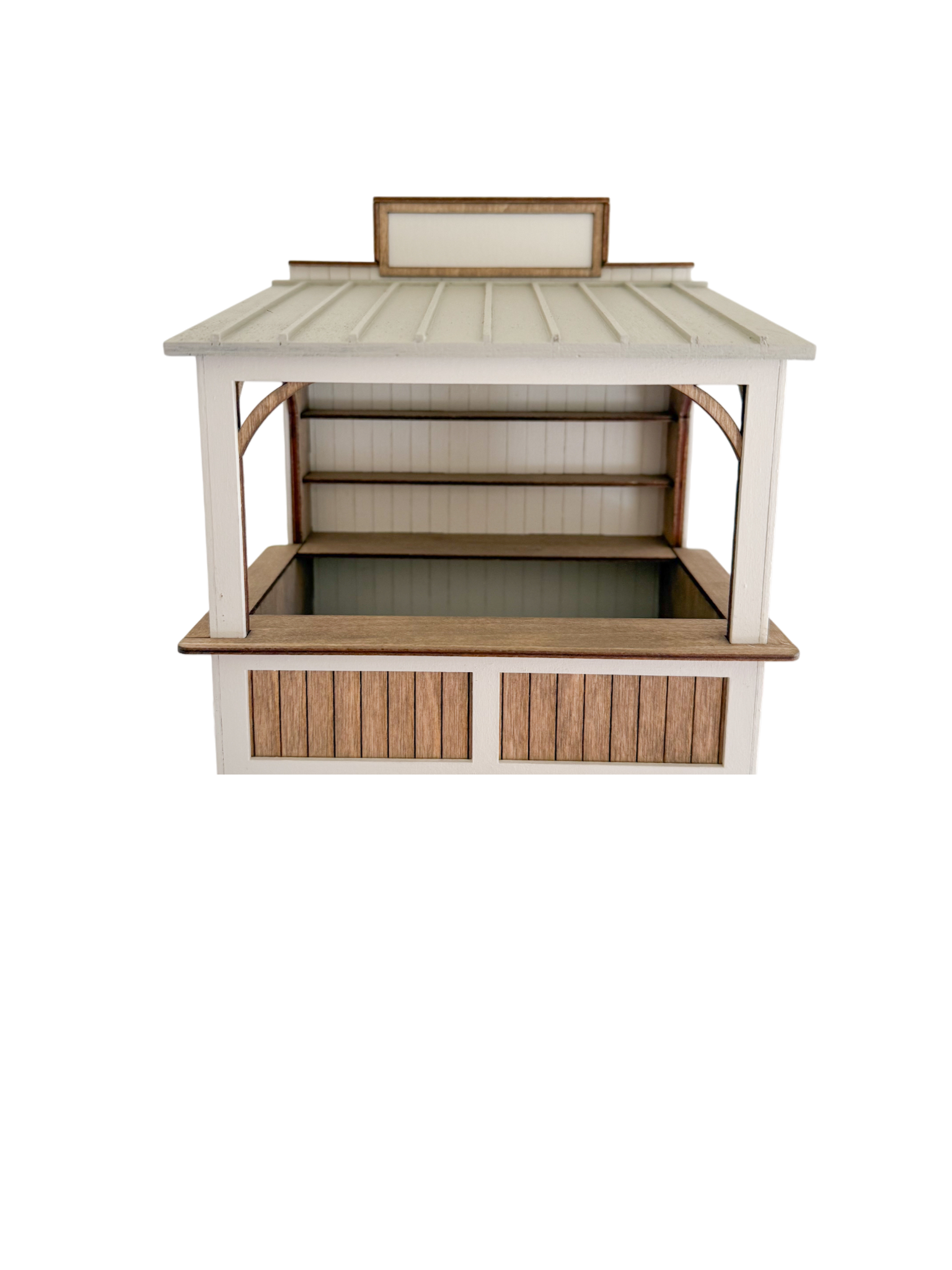 Bring a touch of open-air charm to your miniature world with our “Market” kit — a perfectly scaled, handcrafted structure inspired by countryside farmers markets and coastal vendor stands. Designed for versatility and simplicity, this petite build is ideal for displaying miniature flowers, produce, baked goods, or handmade crafts.