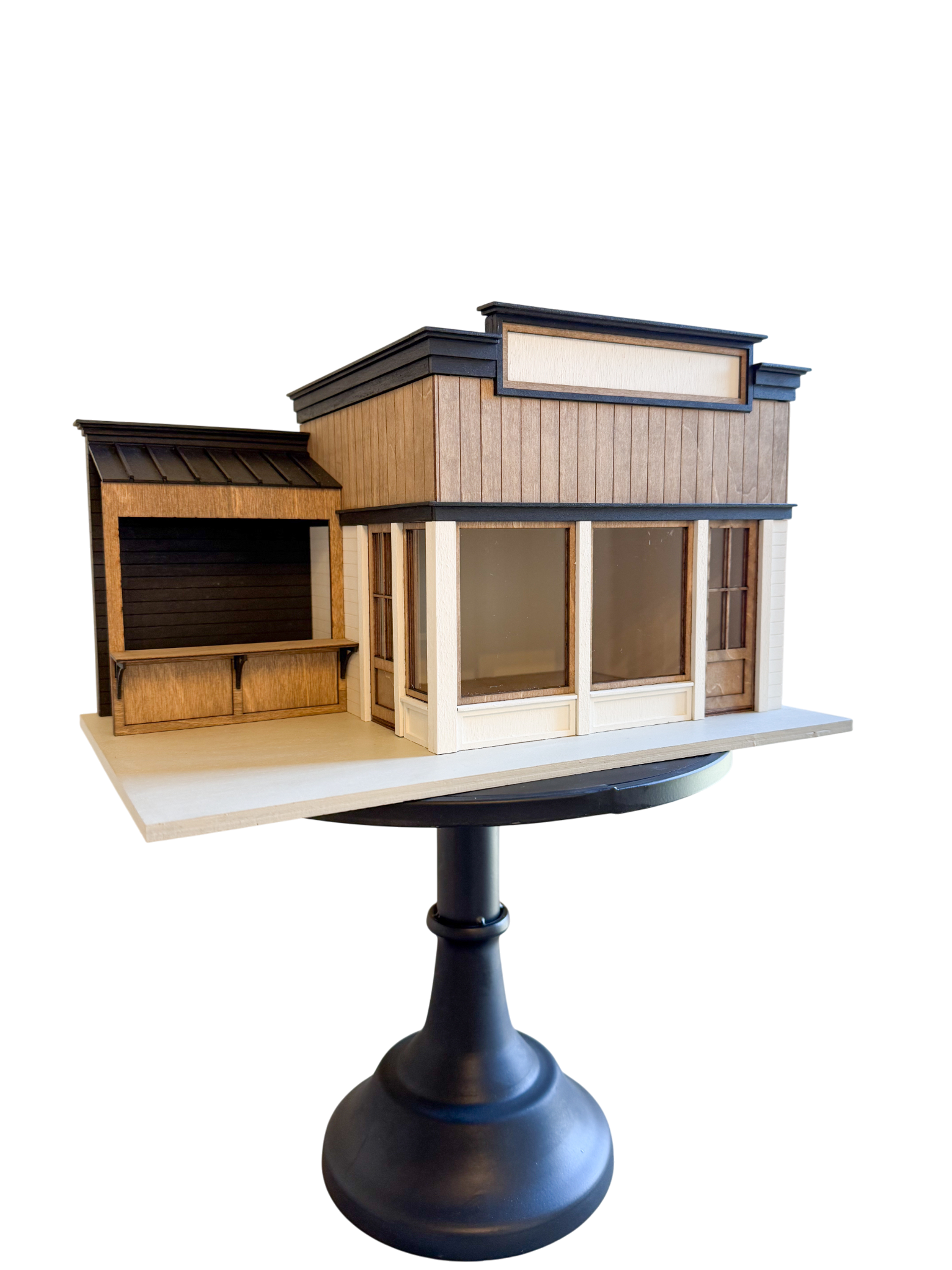 Step into small-town charm with our "Marlowe" kit — a beautiful miniature storefront that evokes the warmth of a cozy village market or artisan boutique. Featuring a classic front façade with large display windows and a charming outdoor stand, this kit is perfect for creating your own flower shop, bakery, general store, or café.